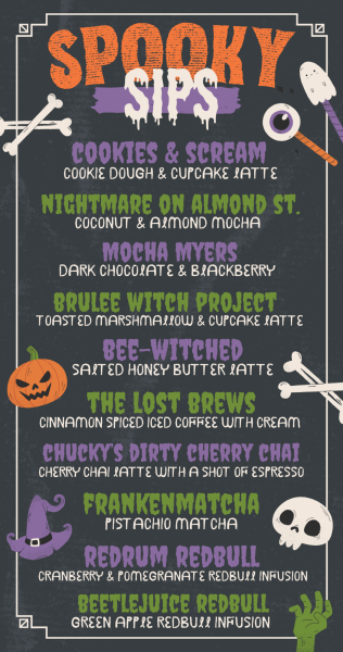 “I’m personally not a fan of the Fall favorites, however, the Redbull infusion on Spooky Sips is amazing,” Lecka said.